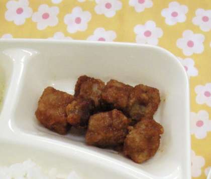 2 まぐろのつけ汁をきり、でんぷんをまぶし、熱した油であげる。