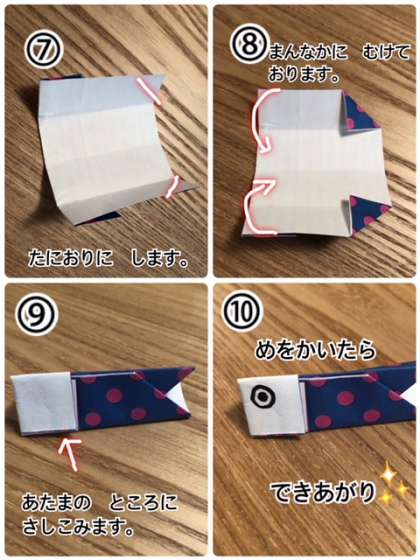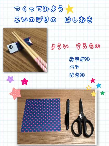 おりがみを つかって こいのぼりの はしおきを つくってみましょう。