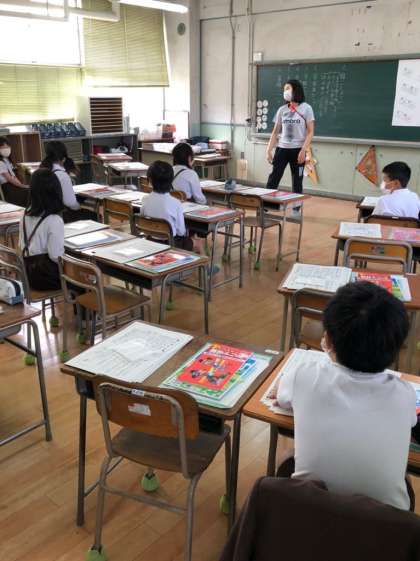 元気に登校していました。緊張した様子で先生のお話を落ち着いて聞いていました。