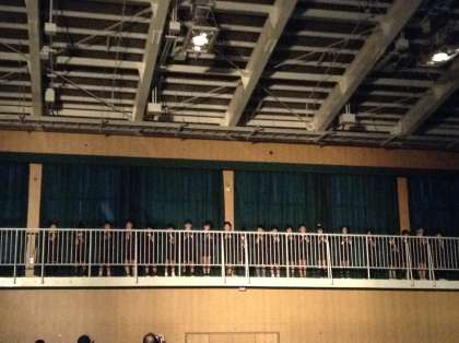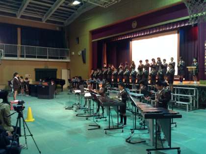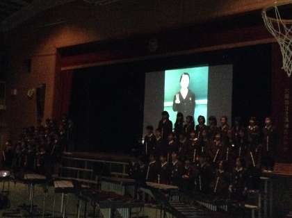 つづいては4年生による、「メロディに思いをこめて」でした。リコーダー奏からはじまりましたが、舞台にはいません!2階通路から吹いていました。途中には、自分の夢をスライドに投影しながらリコーダーを吹きました。