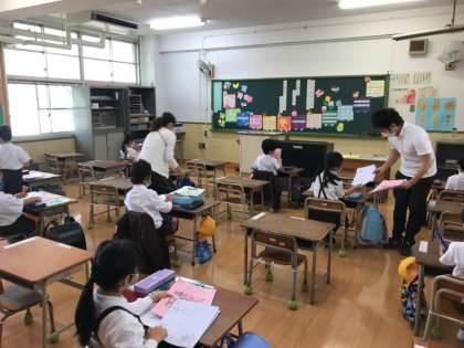 昨日の登校日は、1人で登校する初めての日。玄関に入ると、笑顔で「おはようございます」とあいさつをし、楽しみな様子で教室に向かっていました。