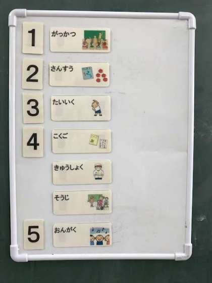 これは、見通しをもって一日を過ごせるので、不安がなくなり、安心して自主的に行動できるようにするための工夫です。