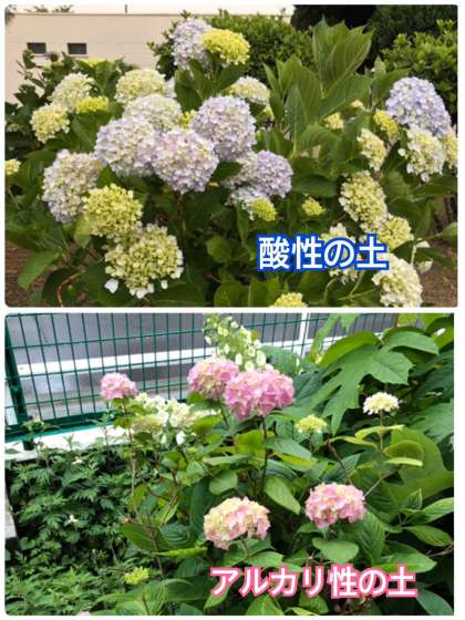 ピンクはアルカリ性の土、青は酸性の土で育ちます。