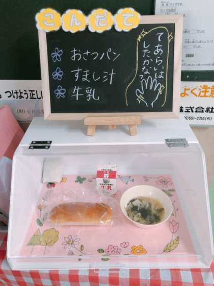 「すまし汁」は、かまぼこを主材に、キャベツ、えのきたけ、乾燥わかめを使用した汁ものです。