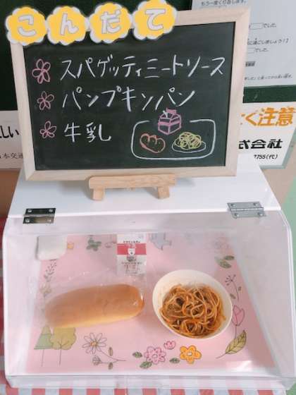 「スパゲッティミートソース」は、牛ひき肉、豚ひき肉を使い、小麦粉と綿実油をよくいためて作るブラウンルウで仕上げています。毎回児童に好評な献立です。