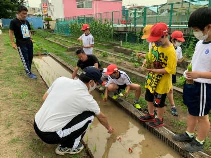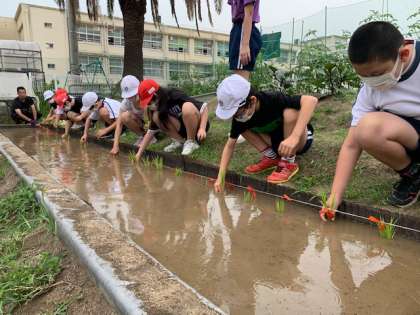 小分けした苗の根元を持って、まっすぐ土に植えるのは、想像よりも難しかったようですが、「泥が気持ちよかった」「根の部分がかたかった」「植えながら心の中で育てーとおまじないをかけました」などいろいろな感想を書いていました。