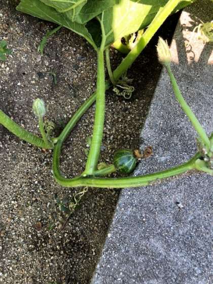 きたおかファームでは、野菜が育ち始めています。カボチャやトマト、メロン、トウモロコシなどが、大きくなってきました。