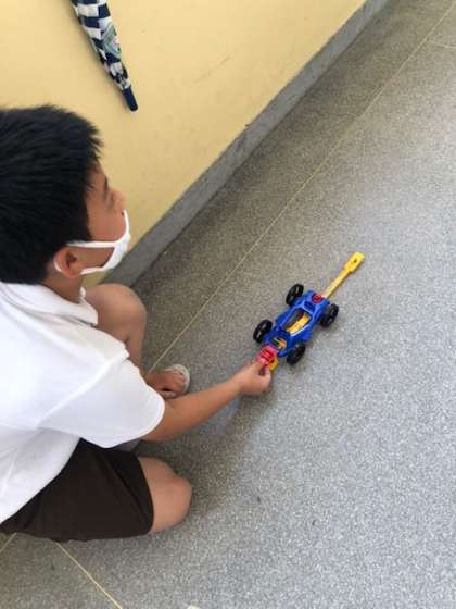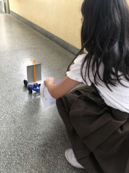 理科「風やゴムの働き」の学習で、車型の道具を作って活動しました。