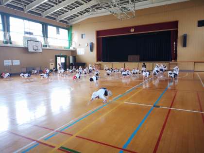 久しぶりの講堂だったので、子どもたちに自然と笑顔があふれていました。