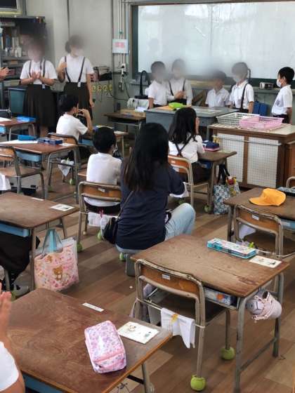 6年生が1年生の教室に自分のグループの友だちを迎えに行き、活動教室へ行きました。そのあと、各教室で自己紹介・グループのめあてを決めるなどの活動をしました。