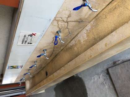給食室の横の水道では、蛇口のハンドルが新しく付きました。