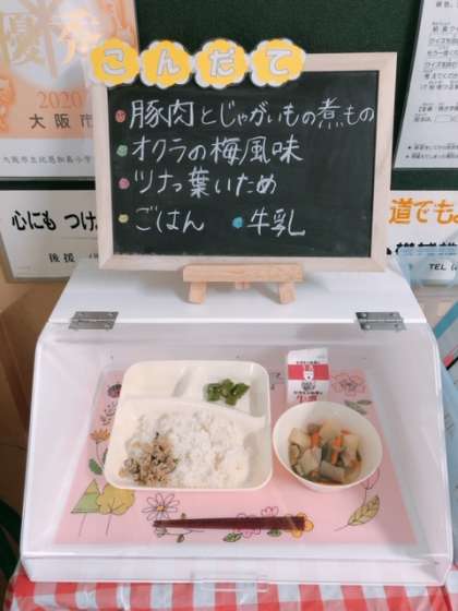 「オクラの梅風味」は、焼き物機で蒸したオクラに、梅肉、砂糖、米酢、うすくちしょうゆで作ったタレをかけます。