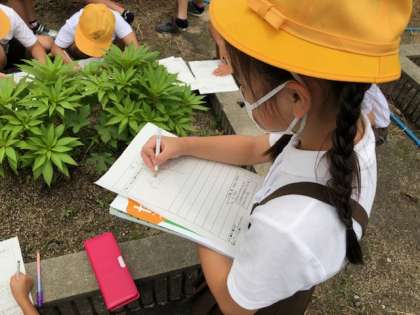 大きさを測ったり、手触りを感じたりしながら、記録することができました。