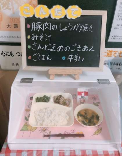 「みそ汁」は、とうふ、かぼちゃ、えのきたけ、わかめを使用しています。
