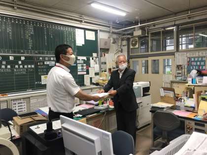 本校は、スクールフォローアップ事業の対象校として選ばれました。スクールフォローアップ事業とは、教育研究や教育実践の支援を目的とした助成事業です。日本教育公務員弘済会の方が来られて、説明してくださいました。