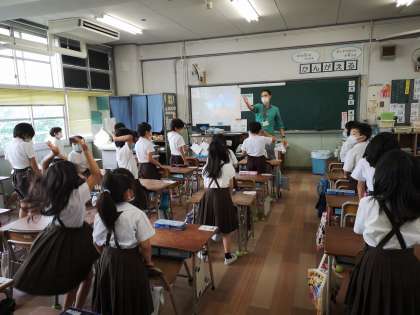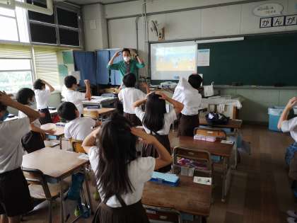 からだいっぱい動かし、全身で英語を表現するようすは、見ていてほほえましかったです。