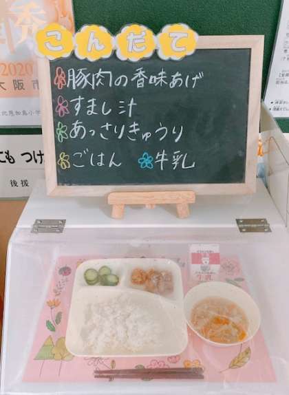 「すまし汁」は、うすあげ、キャベツ、たまねぎ、にんじん、えのきたけを使用した具だくさんの汁ものです。