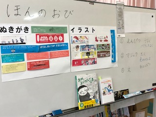 「ぬきがき」や「イラスト」のかき方を学習し、どのように帯を作ろうか楽しそうに考えていました。
