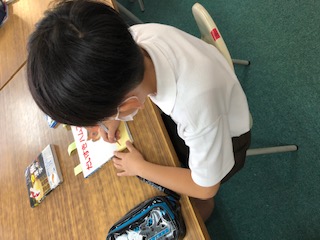 今週の図書の時間では、自分で選んだ本の帯を作りました。