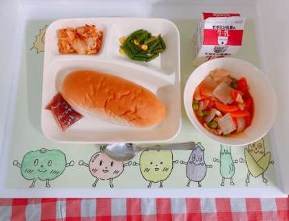 「ケチャップ煮」は、鶏肉を主材に、じゃがいも、たまねぎ、にんじん、青みにグリンピースを使用し、ケチャップなどで味つけします。