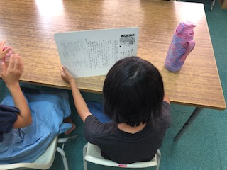 朝から絵本や、図鑑などいろんな本を読んだり、低学年の子に紙しばいを読んであげたりと、みんな静かに過ごしていました。