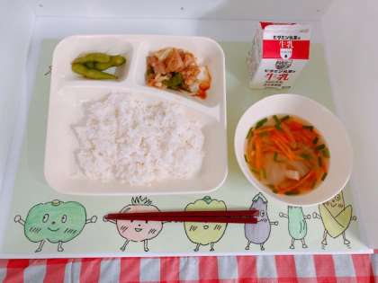 これに、塩で下味をつけ、焼き物機で蒸した「えだまめ」を組み合わせています。