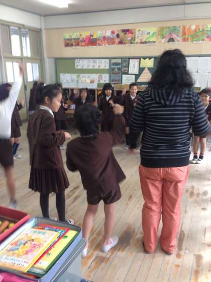 クリスマスソングを英語で歌ったり、椅子取りゲームをしたり、ドッジボールをしたりしました。
