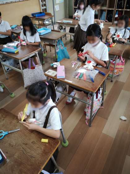 生活科の学習で、手づくりおもちゃを作っています。