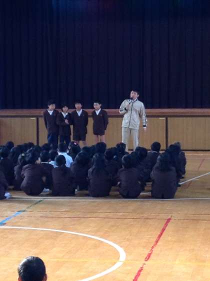 その後、3年生から、2学期の反省と3学期の目標を発表してもらいました。立派に作文の発表ができました。