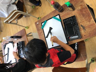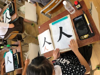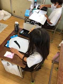 今週の習字の学習では、「人」の字を使って、「はらい」の方向や筆圧に気をつけて書こうをめあてに取り組みました。