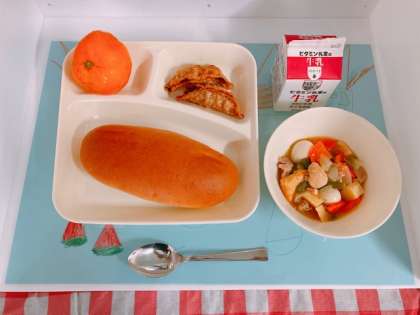 「あげぎょうざ」は、児童に好評な献立です。1人2個ずつ170度の油で揚げます。