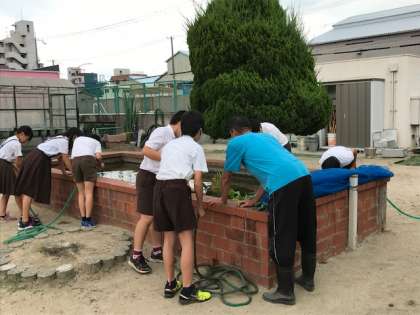 池の水を抜いて掃除をしようとしていますが・・・これがなかなか難しいのです。