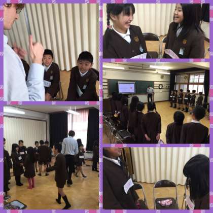 子ども達も楽しんで「My name is〜」「How are you?」と色々な友だちに話しかけていました。