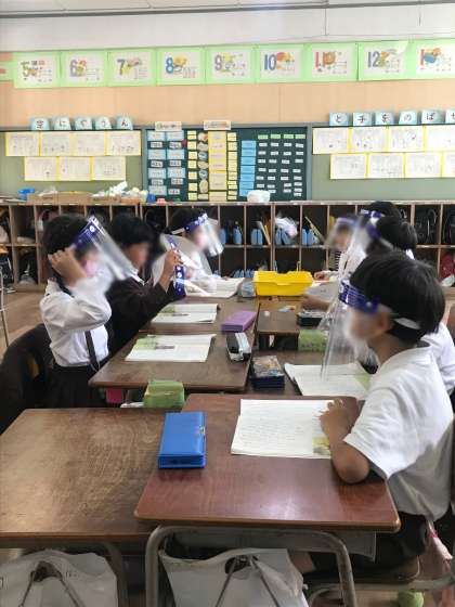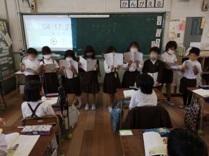 国語科「ニャーゴ」では、学習後、ペープサートを作りに人形劇をします。