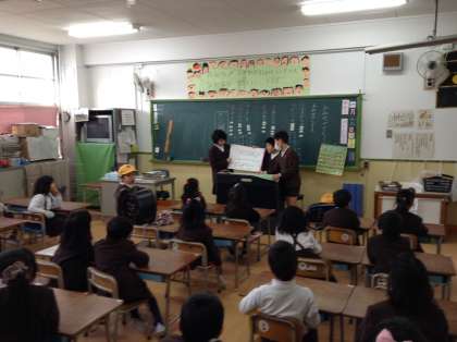 5年生は紙芝居形式にし、絵をつかってインフルエンザの説明や予防の方法を教えます。
