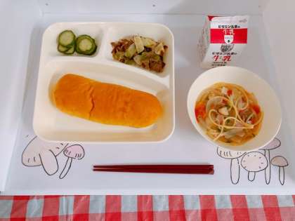 「ほたて貝とトマトのスープスパゲッティ」は、オリーブ油でにんにくを香りよくいためて風味を増し、ほたて貝とベーコンで旨みを出しています。