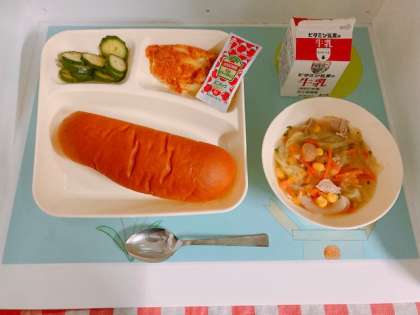 「スープ」は、豚肉とウインナーを主材に、たまねぎ、キャベツ、にんじん、コーン、青みにパセリを使用しています。