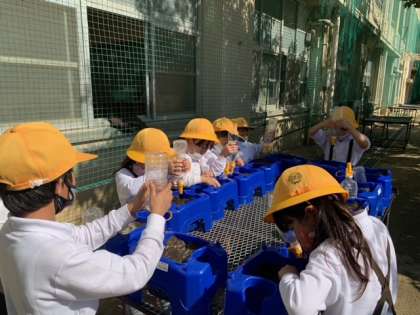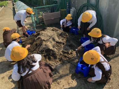 土は、あさがおを育てた時に使ったものに肥料を加え、栄養満点にして再利用しています。子どもたちは、球根を見て「玉ねぎみたい〜!」「これでチューリップが咲くの!?」と驚いていました。