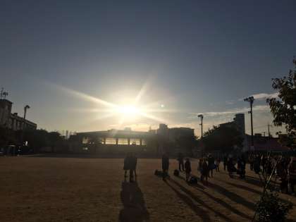 とても良い天気です。元気な声で「おはようございます」と、子どもたちが集まってきました。