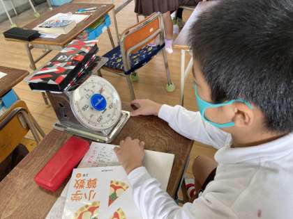 学習したことを使ってはかりで身近にあるものをはかりました。