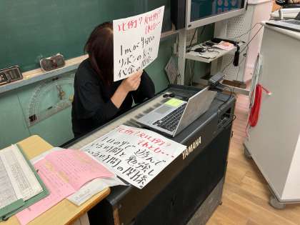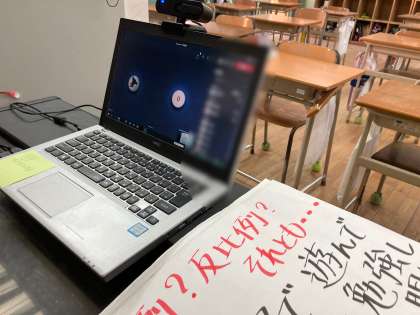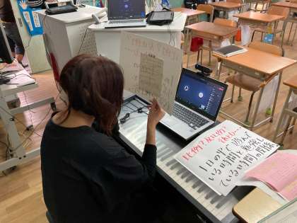 下校後、参加できる児童は、それぞれにカメラに問題を映してチャットや音声で回答していました。