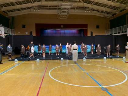 5年生が出演するにあたり、本番前にリハーサルを行ってくださいました。演者の皆様と生演奏に合わせて練習させていただきました。とても真剣に参加していました。