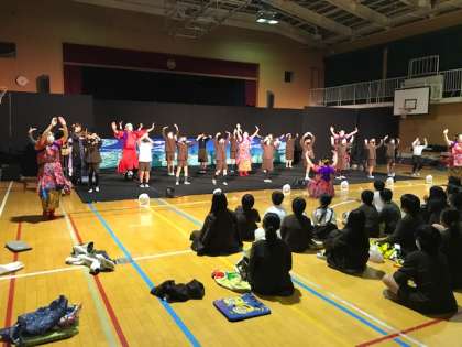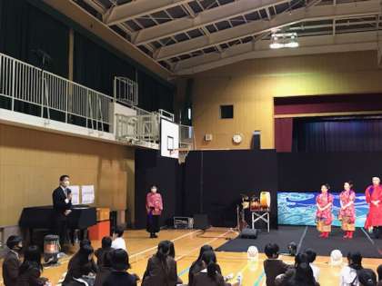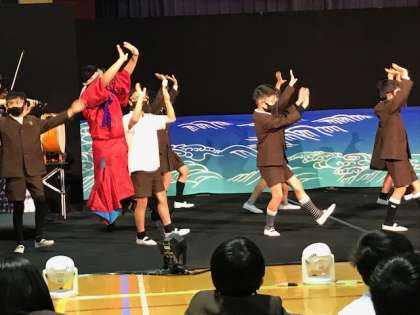 とても素晴らしい公演でした。子どもたちの感想の中には、「沖縄に来たような気持ちになりました。」「表情や踊りだけなのに、気持ちが伝わってきました。」「とてもきれいな衣装でした。」「音楽がとてもすてきでした。」など、楽しかったことが伝わってくる感想がたくさん書かれていました。