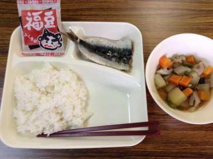 給食でも節分の行事献立として、イワシ・福豆が出ました。