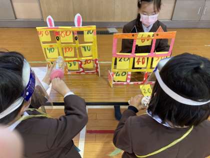 2年生が『おもちゃランド』へ招待してもらいました。すべてのおもちゃが、2年生の手作りです。2年生は、1年生が楽しく遊べるように、わかりやすくルール説明をしてくれました。2年生への憧れの気持ちが募った素敵な時間でした。