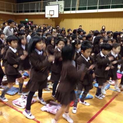 プログラムの中には、今年度の運動会で踊った「妖怪体操第一!」があり、