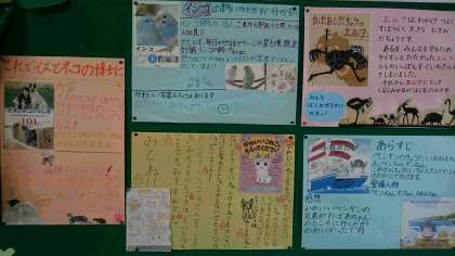 動物の体や特徴について紹介されている本や、動物が主人公の物語など、動物の本もさまざまです。本の内容やあらすじ、クイズなどを取り入れて工夫したポスターができました。北恩加島小学校図書館に、掲示しています。ぜひ、見てくださいね。