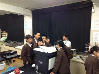 6年生は、先日まで「電気と発電」についての学習でした。はじめに、電気は“光”“音”“熱”“運動”に変換されることを復習し、その後コピーの仕組みをくわしく教えていただきました。