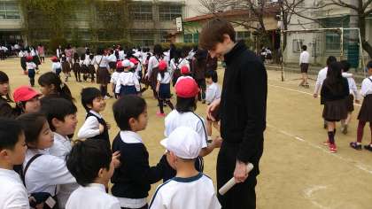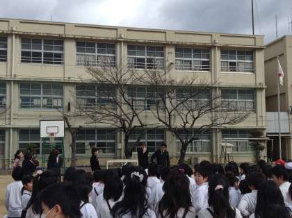 C−NETのスコット先生が、北恩加島小学校では本日最後の勤務となりました。耐寒かけ足のあと、スコット先生からお別れの挨拶をいただきました。英語でのあいさつには、みんな耳を立てて聞いていました。