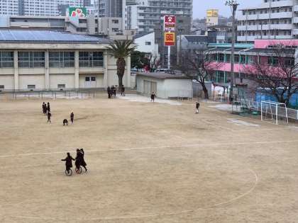 「寒い寒い」と言いながら、子どもたちは休み時間や放課後も元気に外で遊んでいました。朝から池の水がこおっていることに気づいてツンツンと氷を割ってみたり、午後からは雪がちらつき、うっすら積もった雪に足跡をつけに行ったりと、冬を楽しんでいました♪